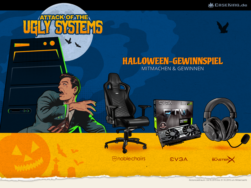 Berlin, 25.10.2016 – Caseking lässt es gruseln! Acht Tage lang gibt es beim Caseking Halloween Special täglich den (1) Thrill des Tages mit Daily-Deal-Sonderangeboten abzustauben, (2) ein leistungsfähiges King Mod Gaming-System mit zwei GRATIS-Spielen zum Sonderpreis (Gears of War 4 & Mafia III), (3) ein exklusives Facebook-Gewinnspiel zum Mitmachen mit tollen Preisen sowie (4) speziell am 31.10.2016 ein Instagram-Gewinnspiel mit Verlosung im Caseking Outlet-Store. Der Thrill des Tages wird jeden Tag auf der Caseking Startseite und Facebook aktualisiert! Alle weiteren Informationen hier in der Übersicht. Jetzt nur bei Caseking!