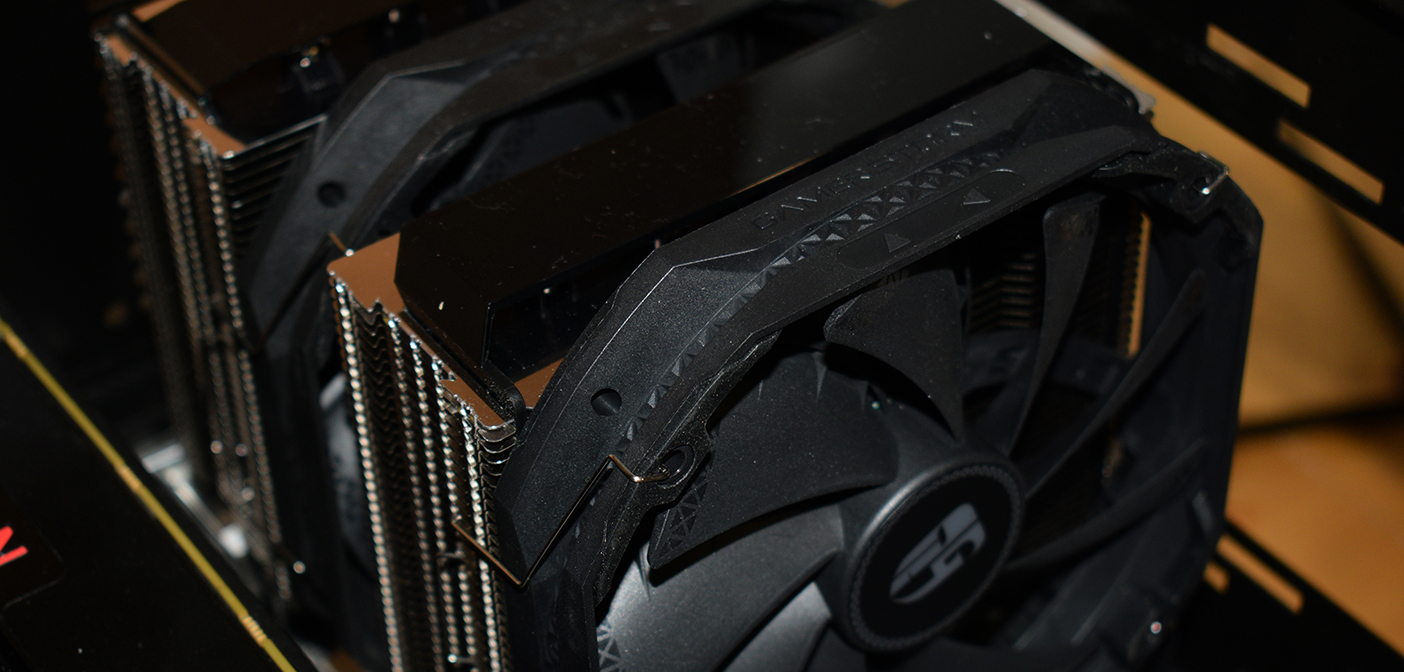 Der Assassin ist ein Doppelturm-Kühler mit zwei getrennten Enden. Insgesamt besitzt der Kühler sieben Heatpipes. Die beiden Türme sind identisch groß und bieten eine große Fläche, um die Luft und damit die Wärme zu transportieren. Die Finnen sind nicht sonderlich bearbeitet oder verzahn um eine Verwirbelung zu erzeugen. Vielmehr sind die Finnen glatt und U-Förmig um die warme Luft am Ende direkt hinaus zu befördern. Auf dem Ende der Heatpipes sitzt eine Kunststoffblende, welche bei der Auslieferung mit einer Folie versehen ist.