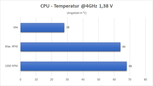 Im Test zeigt sich, dass die Deepcool Castle 360 RGBV2 eine sehr effiziente All-In-One Kühllösung darstellt. Ihre maximalen Umdrehungen sind dabei aber nicht zu unterschätzen, denn die Lüfter können definitiv aus dem Gehäuse gehört werden. Mit 34,7 dB(A) stellen sie eine vermeidbare Störquelle dar. Auf 1000 Umdrehungen reduziert hören wir auch außerhalb des Gehäuses nur ein minimales Betriebsgeräusch und messen dieses mit 24,7 dB(A) im Abstand von 50 cm. Vergleiche in unserer Redaktion mit stärkeren Prozessoren und mit anderen Kühlern zeigen uns aber, dass das Kühl-Ergebnis besser sein kann, wir vermuten dahinter einen nicht Ryzen 3000 optimierten Kanalverlauf im Kühler. Der Ryzen 3000 besitzt eine veränderte Struktur und benötigt die Kühlfinnen bzw. Kanäle großflächiger.