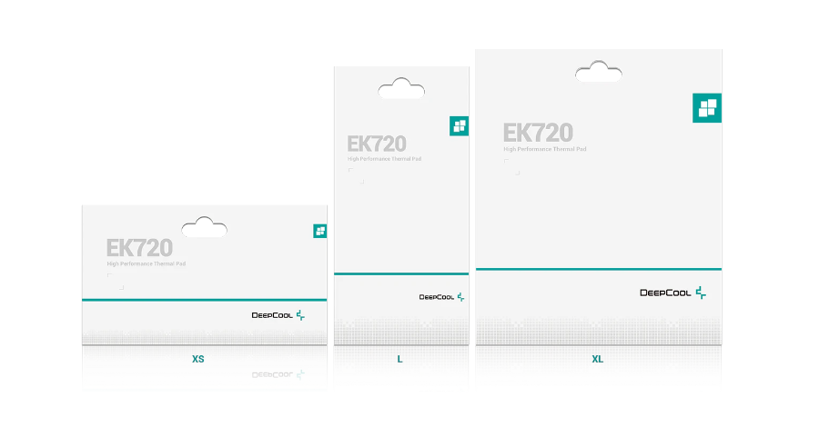 Die EK720 Wärmeleitpads sind nicht elektrisch leitend und lassen sich dadurch ohne Probleme bei elektronischen Bauteilen verwenden. Das macht die Installation auf Leiterplatinen mit empfindlichen Schaltungen besonders komfortabel und einfach. Außerdem sind die EK720 Wärmeleitpads in den drei Größen XS, L und XL erhältlich. Jede Anwendung setzt einen spezifischen Abstand voraus, weshalb DeepCool die EK720 in den Stärken 0,5 mm, 1,0 mm, 1,5 mm und 2,0 mm anbietet.