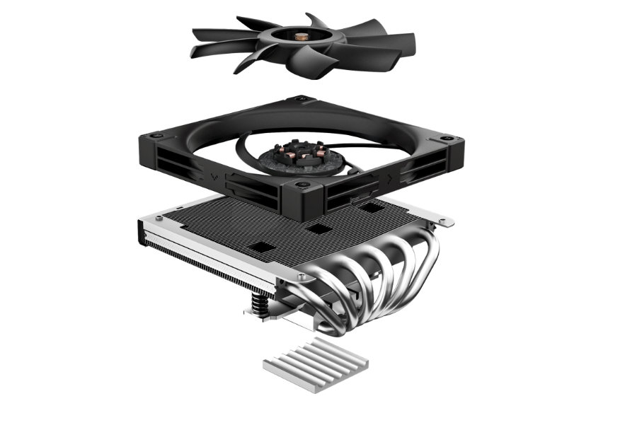 Der DeepCool AN600 ist ein Low-Profile-CPU-Kühler, der die CPU mit 180 Watt und auch die RAM-Module kühlt. Der AN600 nutzt einen 120-mm-Lüfter mit hohem Luftstrom, ein überhängendes Design und kühlt aktiv RAM-Module mit einer Höhe von bis zu 40 mm, während er mit ITX-Motherboards kompatibel ist. 62 Aluminiumlamellen, ein 120-mm-Lüfter mit schlankem Profil, 6 optimierte Heatpipes und eine erhöhte Kupferkühlplatte sorgen dafür, dass der AN600 180 Watt Kühlleistung in einem kurzen, 67 mm hohen CPU-Kühler bietet.