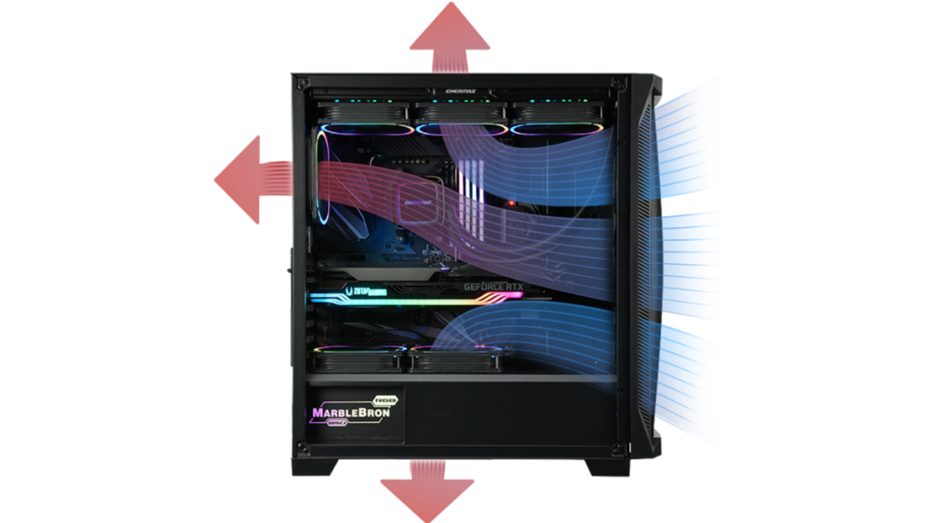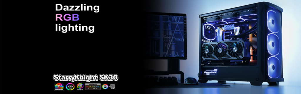 Das Curved Mesh Front Design und ein zusätzliches Mesh on Top unterstützt den Airflow und verbessert somit auch die Kühlung des STARRYKNIGHT SK30 erheblich. STARRYKNIGHT SK30 bietet einen breiten Support für die Integration von Wasserkühlern in den Radiator Größen 360, 280 und 240mm oder den Einbau bis zu 9 Lüftern.