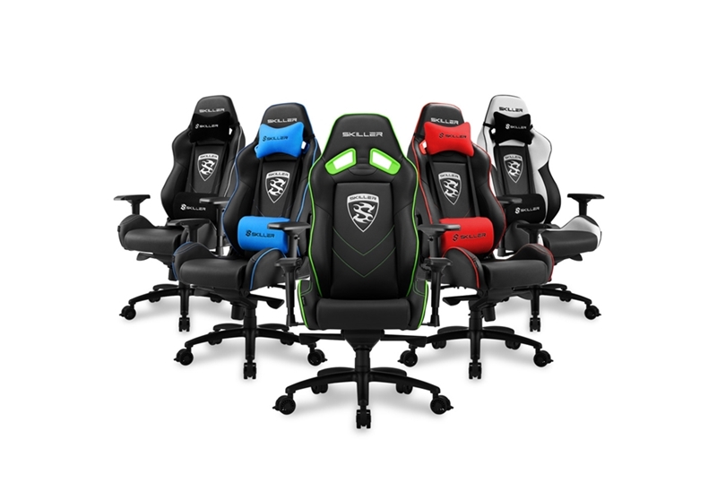 Die ebenfalls in Akzentfarbe gehaltenen Kopf- und Lendenkissen können bei Bedarf einfach angebracht werden und schonen Nacken und Wirbelsäule, gerade bei längeren Spielsitzungen. Für ausgedehnte Spielpausen kann die Rückenlehne des SKILLER SGS3 Gaming Seats in einem weiten Winkel von 90° bis 160° festgestellt werden. Mittels des massiven Fußkreuzes aus Aluminium soll der Stuhl auch bei geneigter Rückenlehne sicher auf dem Boden stehen. Die extragroßen 75-mm-Rollen bieten Mobilität auf allen ebenen Untergründen. Dank praktischer Bremsfunktion wird zudem ein unerwünschtes Wegrollen des Stuhls verhindert.