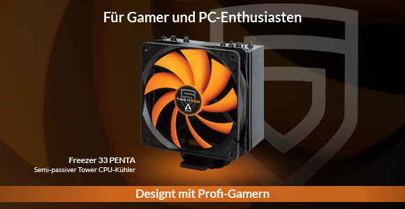 Mit Freude präsentieren wir unseren neuen Freezer 33 PENTA, der mit seinem titanschwarzen Kühlkörper und dem Lüfter im PENTA-Style nicht nur optisch überzeugt. In enger Zusammenarbeit mit unserem deutschen eSports Partner PENTA Sports, haben wir diesen besonderen Freezer designt.