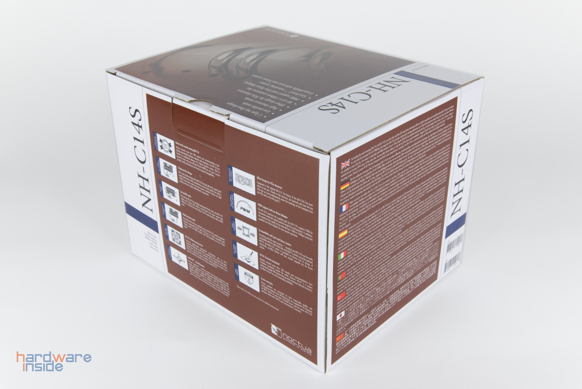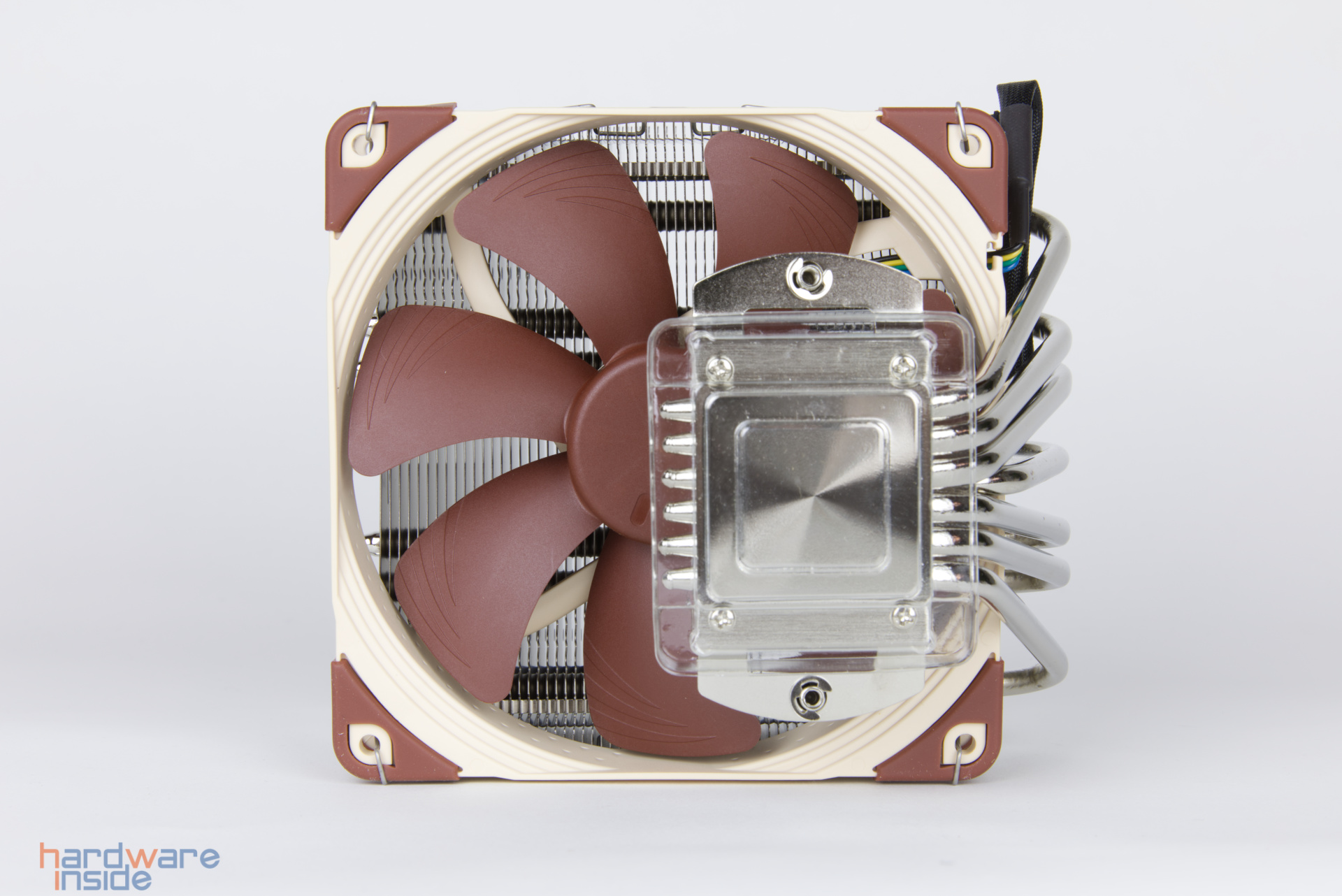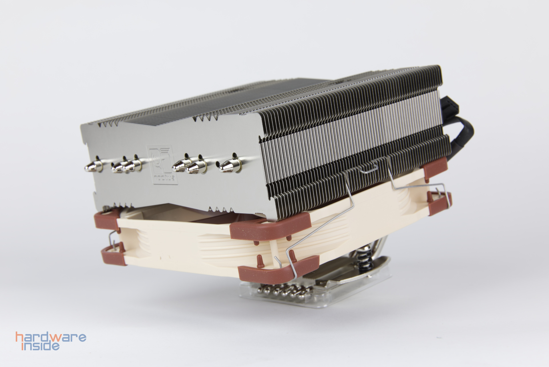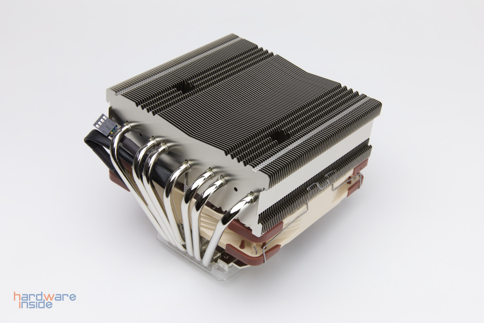 Mitgeliefert wird der Noctua NF-A14, welcher zwischen 300 und 1500 rpm geregelt werden kann. Wird der Lüfter auf dem Kühler montiert, kann Arbeitsspeicher mit einer Gesamthöhe von bis zu 70 mm verbaut werden. Wird er darunter montiert, bietet er sich für viele kleinere HTPC-Gehäuse an.