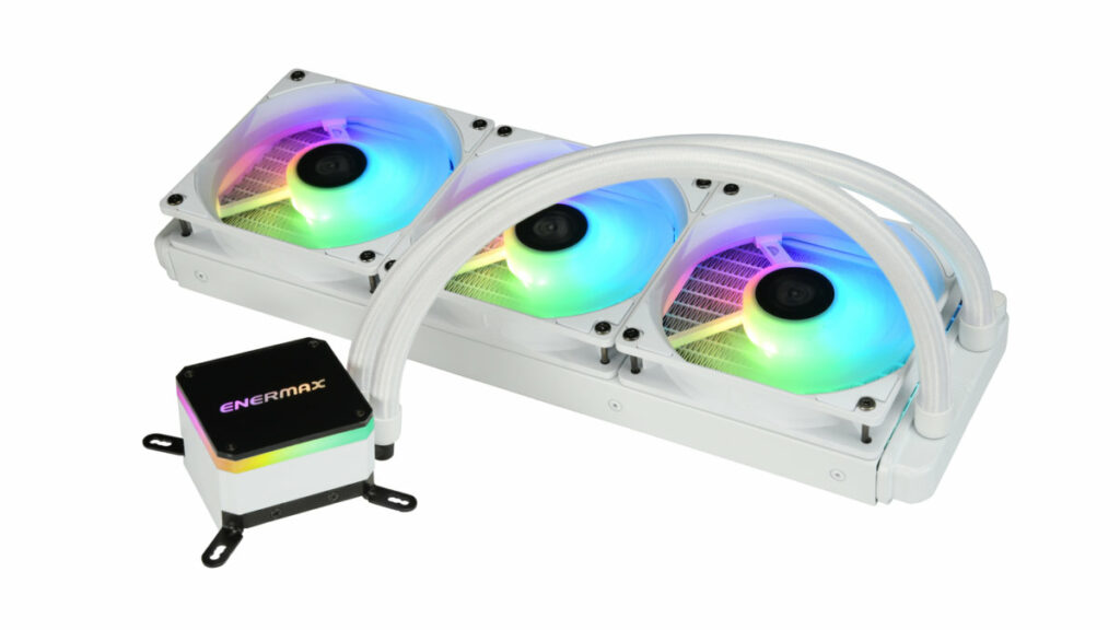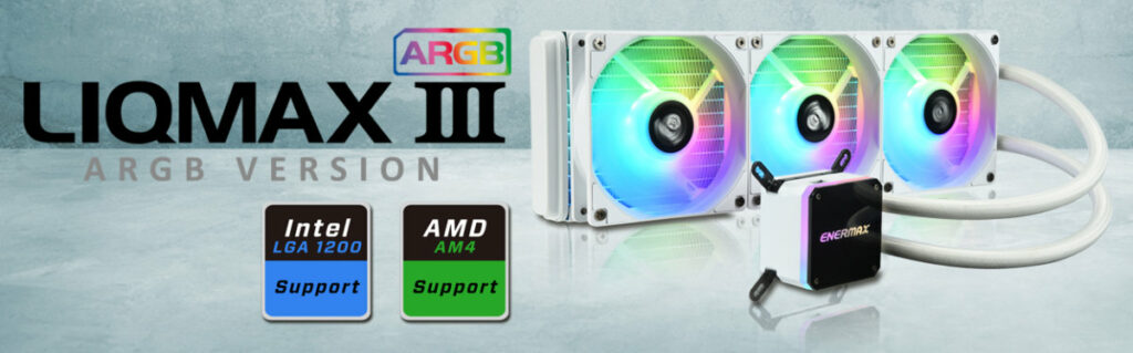 Hamburg – 17.02.2021 – ENERMAX, ein führender Entwickler und Hersteller von leistungsstarker PC-Hardware, kündigt den LIQMAX III ARGB 360 White in Europa an. Das neue Modell zeigt sich mit weißem Radiator, Pumpe und RGB-Lüftern. Der LIQMAX III ARGB 360 ist für die Synchronisation mit kompatiblen RGB-Mainboards vorgesehen, um die Beleuchtung über die Mainboard-Software zu steuern. Ein ARGB-Controller für den Betrieb ohne kompatible Hardware ist im Lieferumfang enthalten. Zwei Lüfter und ein Wasserblock mit ARGB-Beleuchtung ermöglichen die Darstellung von spektakulären Regenbogeneffekten. Ein passendes Montagesystem für aktuelle AMD- und Intel-Sockel einschließlich AM4 und LGA 1200 ist selbstverständlich im Lieferumfang enthalten.