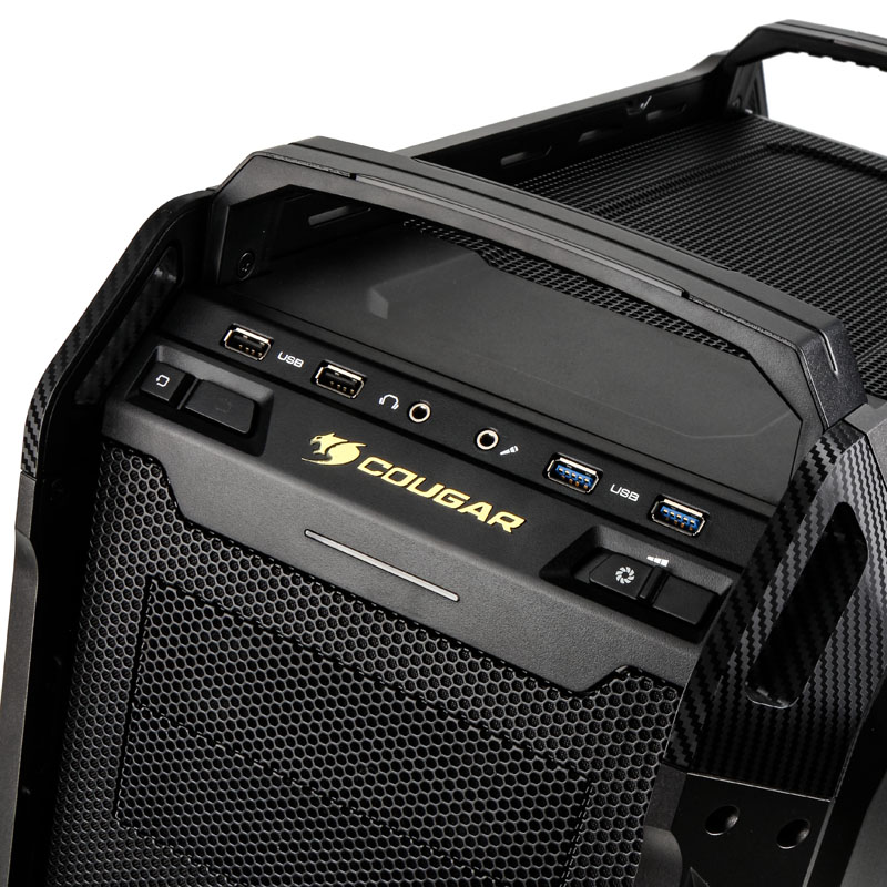 Der Cougar Panzer MAX eignet sich trotz seiner Größe besonders gut für LAN-Partys, denn die bereits erwähnten Griffe können eine Last von bis zu 35 kg tragen, was für ein leistungsstarkes High-End-Gaming-System absolut ausreichen sollte. Außerdem befindet sich zwischen den Griffen ausreichend Platz, um dort platzsparend eine Tastatur zu verstauen. Die Vorderseite verfügt zudem über einen Kopfhörer-Haken, an dem ein Kopfhörer komfortabel zwischengelagert werden kann.