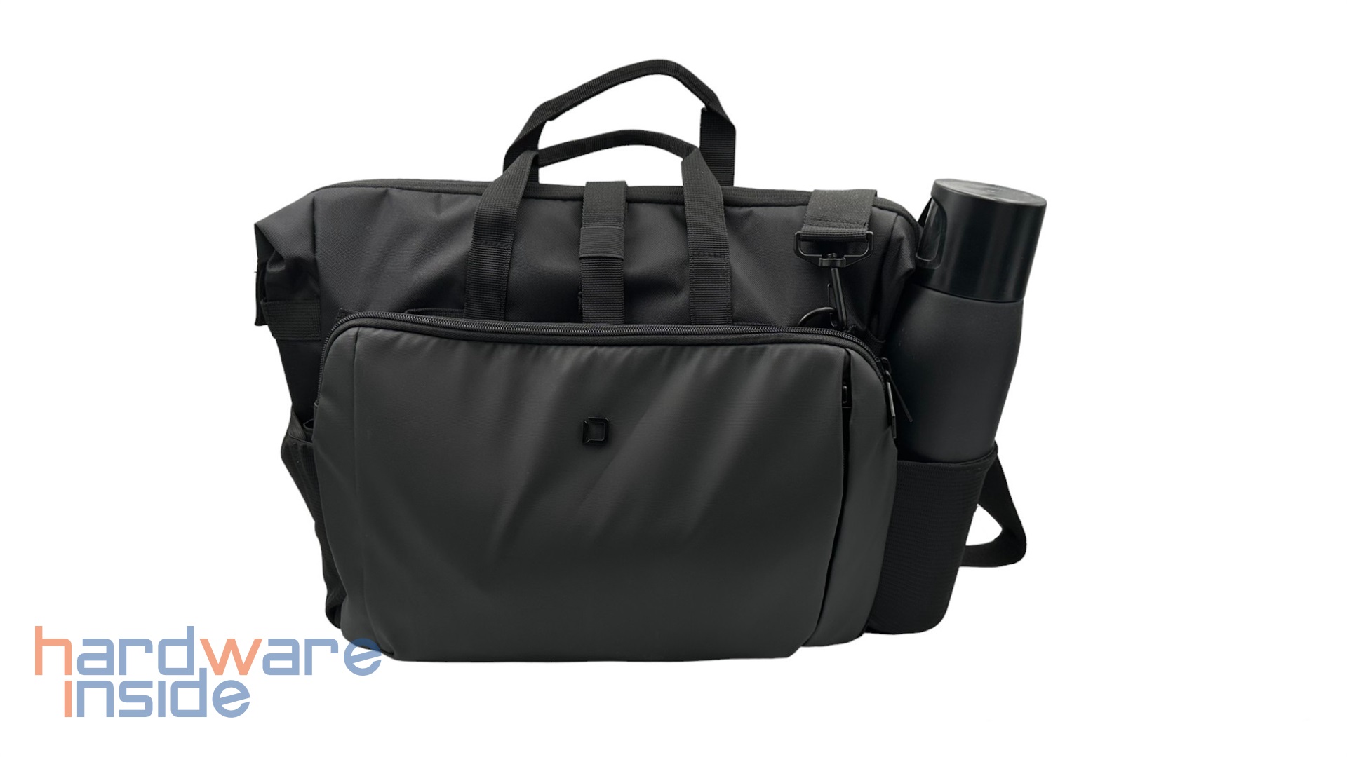Wie bereits erwähnt, verfügt die Tasche an beiden Seiten über Halterungen für Flaschen. An dieser Tasche finden wir diese besonders praktisch, denn egal ob wir eine 250 ml Dose oder eine 700 ml Thermoskanne hineinstecken, beide passen zuverlässig hinein. Wir empfehlen aber bei allen Gebinden von mehr als 500 ml eher auf den Platz im erweiterbaren Fach zu setzen. Insgesamt ist die Dicota Laptoptasche Eco Top Traveller GO mit durchdachten Funktionen ausgestattet und dazu noch gut verarbeitet.