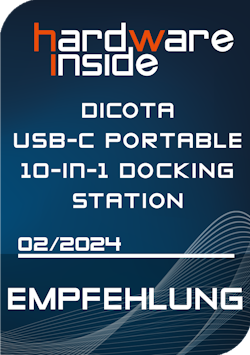 Im Preisvergleich lässt sich die Dicota USB-C Portable 10-in-1 Docking Station derzeit schon für einen Preis ab 67,68 € finden. Im Shop des Herstellers liegt die Dockingstation bei 79,90 €. Hierbei handelt es sich um eine solide und kompakte Docking Station für den mobilen Einsatz. Sie bietet viele Anschlüsse für die meisten Szenarien, jedoch würden wir uns statt dem VGA- lieber einen Display-Port-Anschluss wünschen, der wäre etwas gängiger – auch wenn VGA in manchen (insbesondere staatlichen) Einrichtungen noch immer gängig ist. Die niedrige Bildwiederholrate von 30 Hz sollte in der Praxis kein Problem darstellen, da die Zielgruppe vor allem im Office-Bereich zu finden sein dürfte. Einzig die Rutschfestigkeit auf dem Tisch empfinden wir noch störend, hier würden entsprechende Auflagen aus Gummi ein verrutschen und verkratzen verhindern. Wir vergeben unsere Empfehlung.