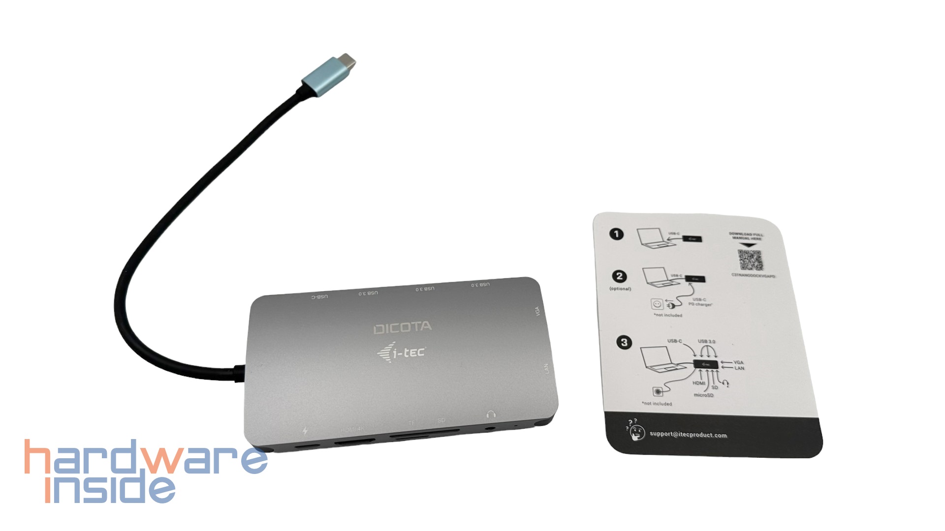 Neben der Dicota USB-C Portable 10-in-1 Docking Station erhalten wir lediglich noch eine sehr kurze Schnellstartanleitung.