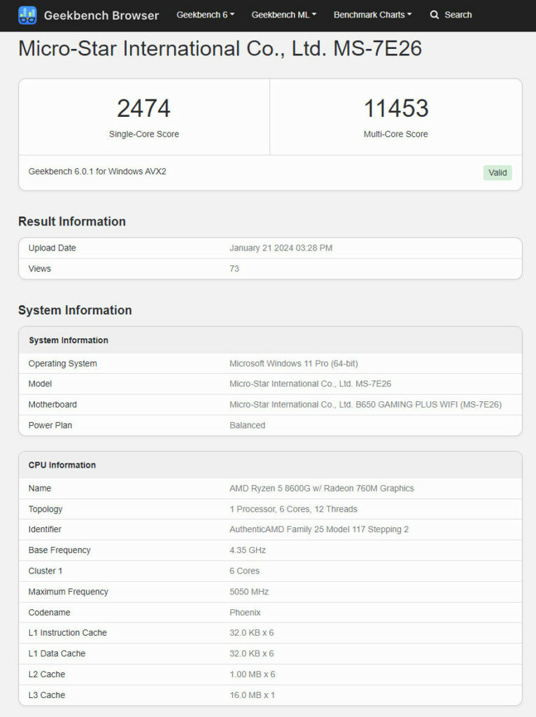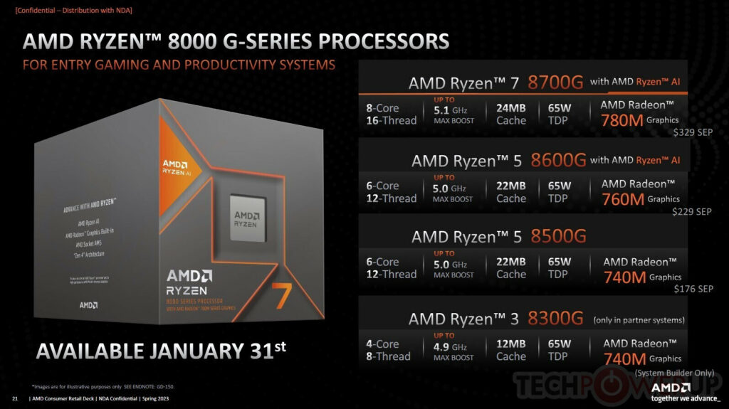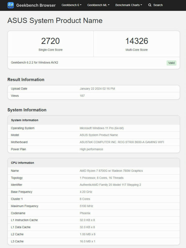 AMD kündigte Anfang des Monats seine Ryzen 8000G-Serie von Zen 4-basierten Desktop-APUs an und nannte als offizielles Datum für die Produkteinführung den 31. Januar. Die Top-Modelle dieser Reihe sind die „Hawk Point“-Prozessoren Ryzen 7 8700G und Ryzen 5 8600G. Olrak29_ hat sich in den sozialen Netzwerken zu Wort gemeldet, nachdem er in der Geekbench-Browser-Datenbank Beispiele für Vorabversionen entdeckt hatte. Es ist sehr wahrscheinlich, dass sich Testmuster in den Händen von Reviewern befinden und wahrscheinlich in den nächsten 1,5 Wochen weitere Benchmark-Ergebnisse hochgeladen werden. Der Ryzen 7 8700G (mit Radeon 780M Grafik) wurde auf einem ASUS ROG STRIX B650-A GAMING WIFI Board mit 32 GB (6398 MT/s) DDR5 Systemspeicher getestet. Am vergangenen Wochenende tauchten online geleakte Zahlen auf, die von einem Ryzen 5 8600G (mit Radeon 760M Grafik) in Kombination mit einem MSI B650 GAMING PLUS WIFI (MS-7E26) Mainboard und 32 GB (6400 MT/s) DDR5 RAM stammen.
