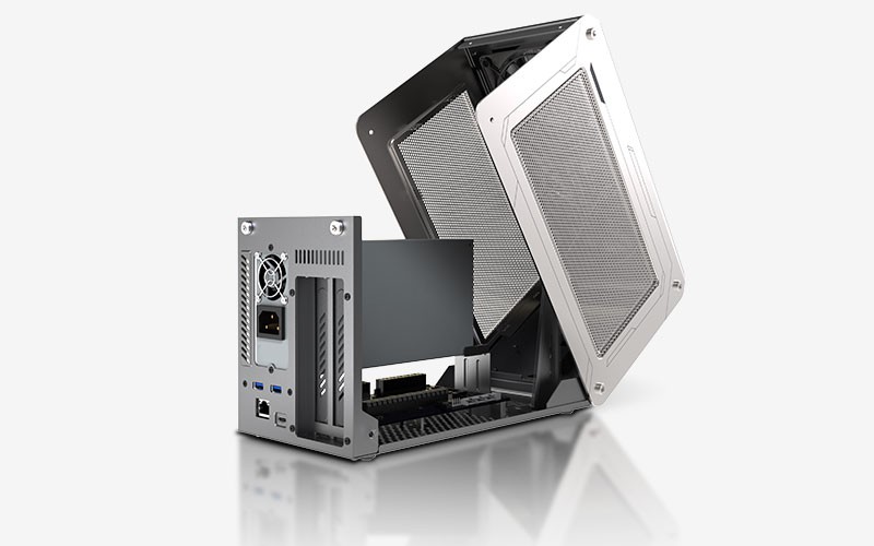 Das eGFX-Gehäuse GearBox 500, das für Benutzer entwickelt wurde, die den Leistungsschub für den Betrieb bandbreitenintensiver Anwendungen wie professioneller Software oder der neuesten 1080p-Spiele benötigen, ist aufgrund seiner leichten und kompakten Bauweise besonders gut tragbar und bietet Platz für Grafikkarten mit bis zu 350 W für PCI-Express x16 aus den Grafikprozessorfamilien für Endkunden und Profis sowohl von AMD als auch Nvidia, wie z. B. die SAPPHIRE PULSE RX 6600 XT.