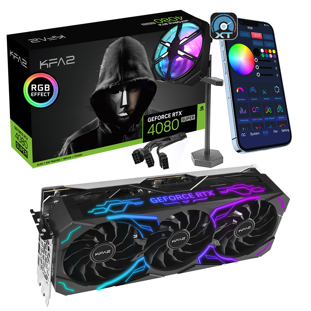 Da alle neuen SUPER-Modelle von der dedizierten Xtreme Tuner-App von KFA2 unterstützt werden, können Benutzer mühelos 1-Click OC verwenden, ARGB-Effekte anpassen, über das OSD auf GPU-Informationen zugreifen und ihre Grafikkarte auf Mobilgeräten übertakten und komplett steuern.