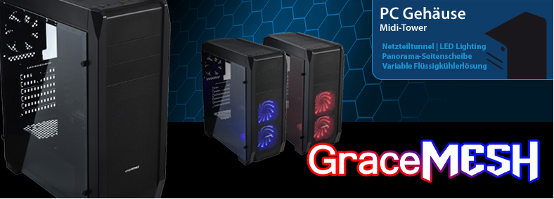 Das GraceMesh bietet die idealen Voraussetzungen für umfassende Kühlung. Die Vorder- und Top-Blenden des Gehäuses sind als komplette Mesh-Cover auf Luftstrom-Optimierung getrimmt.