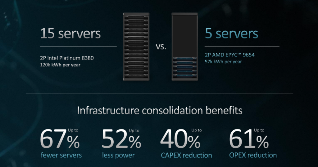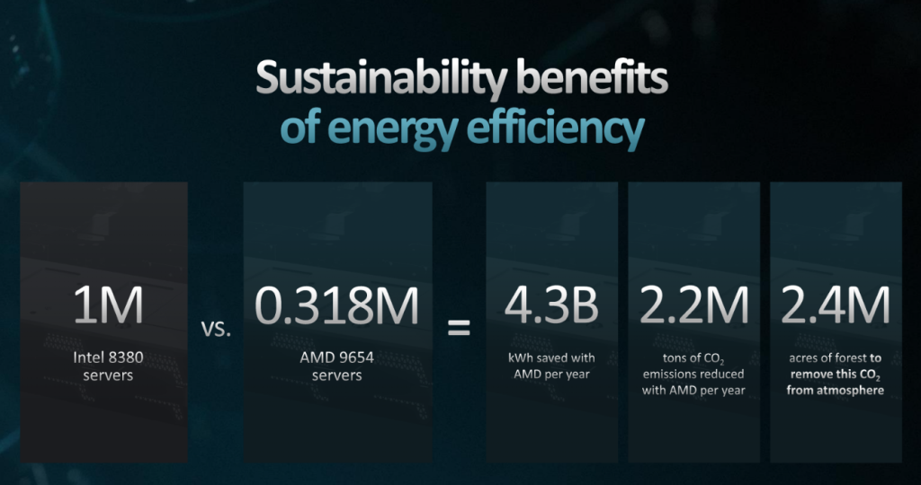 00:19:02 – 00:20:35 – Warum EPYC wichtig für den Energieverbrauch in Rechenzentren ist. („Sie können Millionen von Dollar sparen, wenn Sie auf 4th Gen EPYC aufrüsten“)