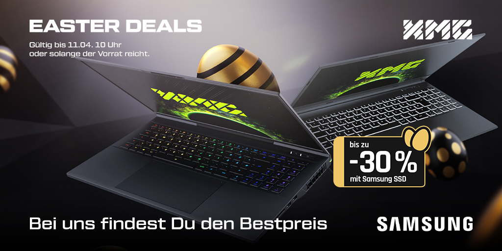 Die diesjährige, große Oster-Rabattaktion auf bestware.com startet am Dienstag, dem 4. April um 10 Uhr. Unter dem Motto „EASTER DEALS – Bei uns findest Du den Bestpreis“ gibt es je nach Modell zwischen 15 und 30 Prozent Rabatt auf ausgewählte Notebooks der Marken XMG und SCHENKER. Die Aktion läuft bis zum 11. April um ebenfalls 10 Uhr oder solange der Vorrat reicht.