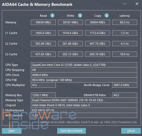 Mit dem Aida64 Cache & Memory Benchmark werden die erreichten Lese-, Schreib- und Kopierwerte sowie die Latenz (Zugriffszeit) ermittelt.
