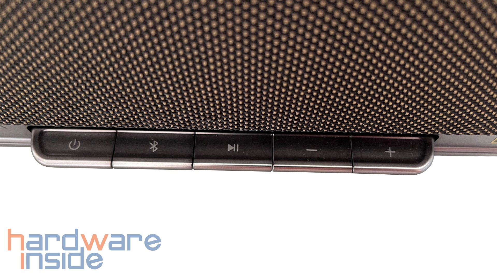 Gerade der Bereich um das Bedienfeld herum brilliert mit seinem klaren und gradlinigen Design, wie hier unschwer zu erkennen ist. Eine LED rechts neben dem EDIFIER Schriftzug dient der Signalisierung des eingeschalteten Zustands und des Pairing-Vorgangs.