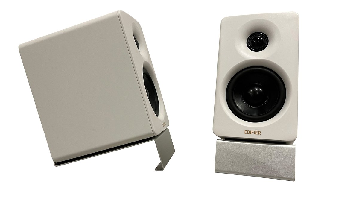 Optisch beeindrucken die Lautsprecher mit einer klaren Linienführung und optischer Leichtigkeit, die durch schwarze Akzente in Treiberbereich ergänzt wird. Die leicht geneigte Bauweise hebt die Klangbühne optimal auf Ohrhöhe an, was einen klareren und direkteren Sound erlaubt. Das goldene EDIFIER-Emblem verleiht zusätzliche Eleganz.