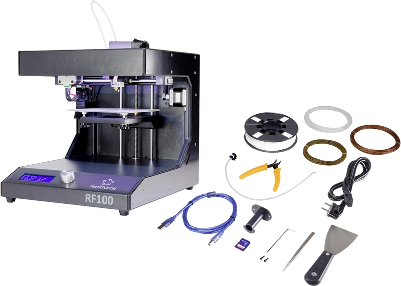 Für alle, die gleich loslegen wollen: Auf der mitgelieferten SD-Karte stehen Ihnen über 100 sofort ausdruckbare 3D-Modelle zur Verfügung. Darüber hinaus sind im Lieferumfang 250g weißer PLA-Kunststoff (original renkforce Filament), Probepackungen der renkforce Materialien Holz, Kupfer und Elastic/Gummi (jeweils 50g) sowie Werkzeug-Zubehör (Pinzette und Spatel) enthalten.