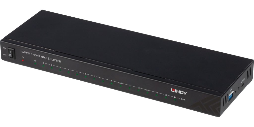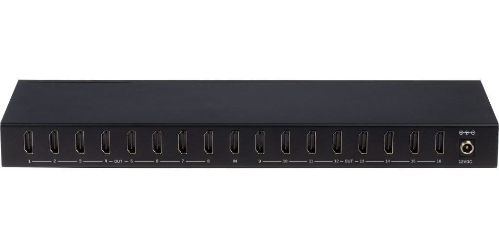 Inhalte von einer einzigen HDMI-Quelle werden über den neuen 16 Port HDMI 4K60 Splitter bis zu einer Auflösung von 3840 x2160 bei 60Hz mit 4:4:4 8 Bit an bis zu 16 HDMI-Displays übertragen. Dadurch können die A/V-Daten, die über HDMI 2.0 mit einer Bandbreite von 18 Gbit/s an die einzelnen Monitore oder sonstige Displays geschickt werden. Eine Wiedergabe in hoher Qualität mit breiterem Farbspektrum und großem Kontrastumfang wird durch die Unterstützung von HDR ebenfalls möglich.