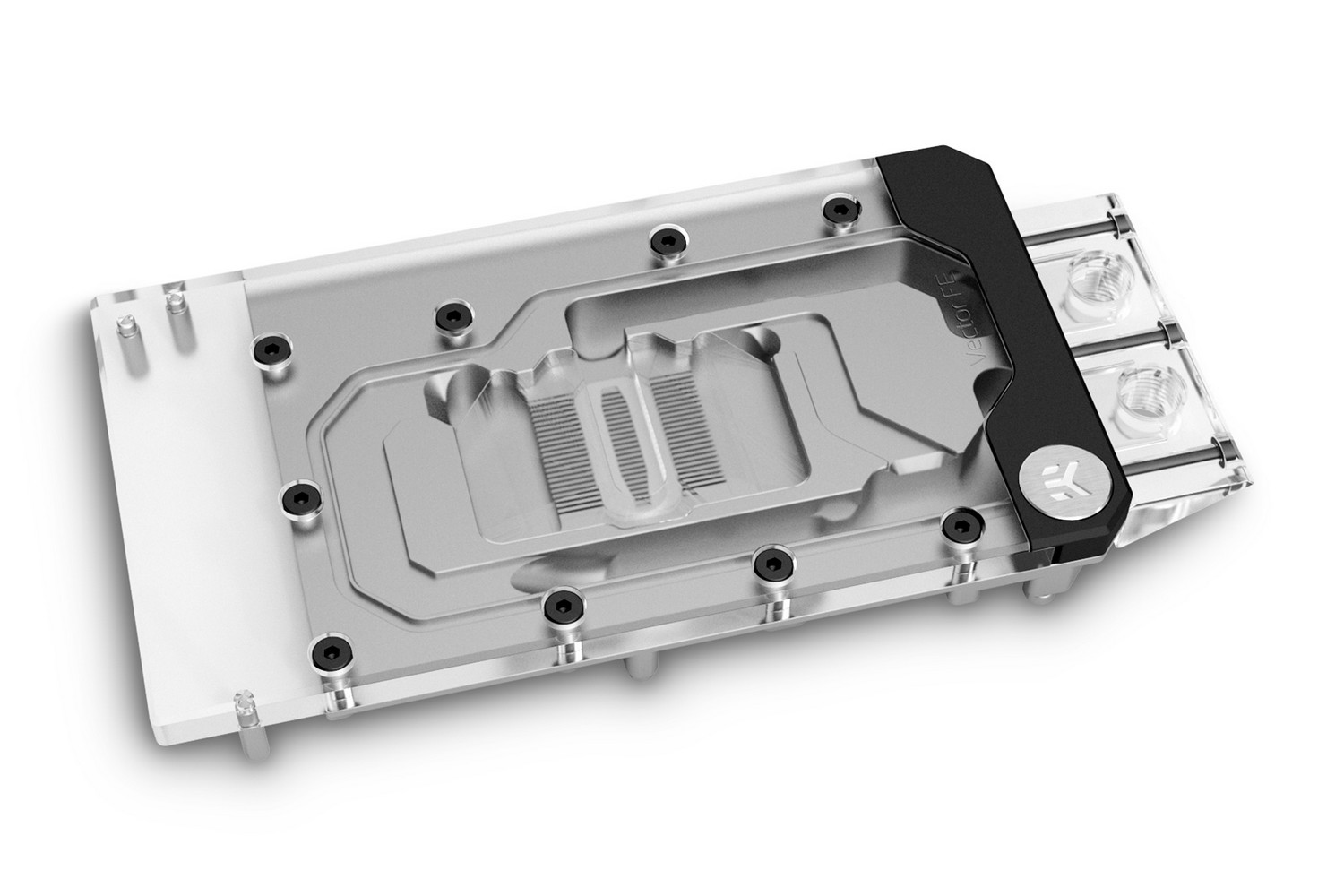 This Vector water block directly cools the GPU, VRAM, and the VRM (voltage regulation module) as a cooling liquid is channeled right over these critical areas. The water block is in contact with MOSFETs and chokes to maximize cooling and minimize the chances of coil whine. It also features optimized flow paths that reduce hydrodynamic instabilities and vortexing (dead spots) inside of them.
