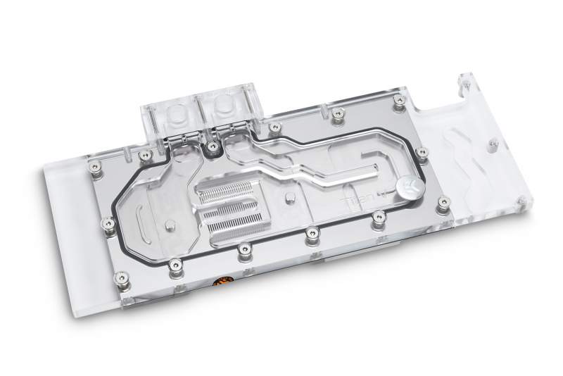 Der EK-FC Titan V Waterblock kühlt direkt GPU, HBM2-Speicher und VRM. Das Kühlmittel fließt durch diese kritischen Bereiche, so dass der Benutzer die Grafikkarte übertakten kann, ohne sich um die Temperaturen zu sorgen. Der Block verfügt über einen zentralen Einlass mit Split-Flow-Kühlmotor für bestmögliche Kühlleistung. Darüber hinaus funktioniert es auch gut mit Rückspülpumpen, ohne die Kühlleistung zu beeinträchtigen. Es verzeiht auch schwächeren Pumpen viel mehr, so dass die Benutzer sie leise betreiben können.