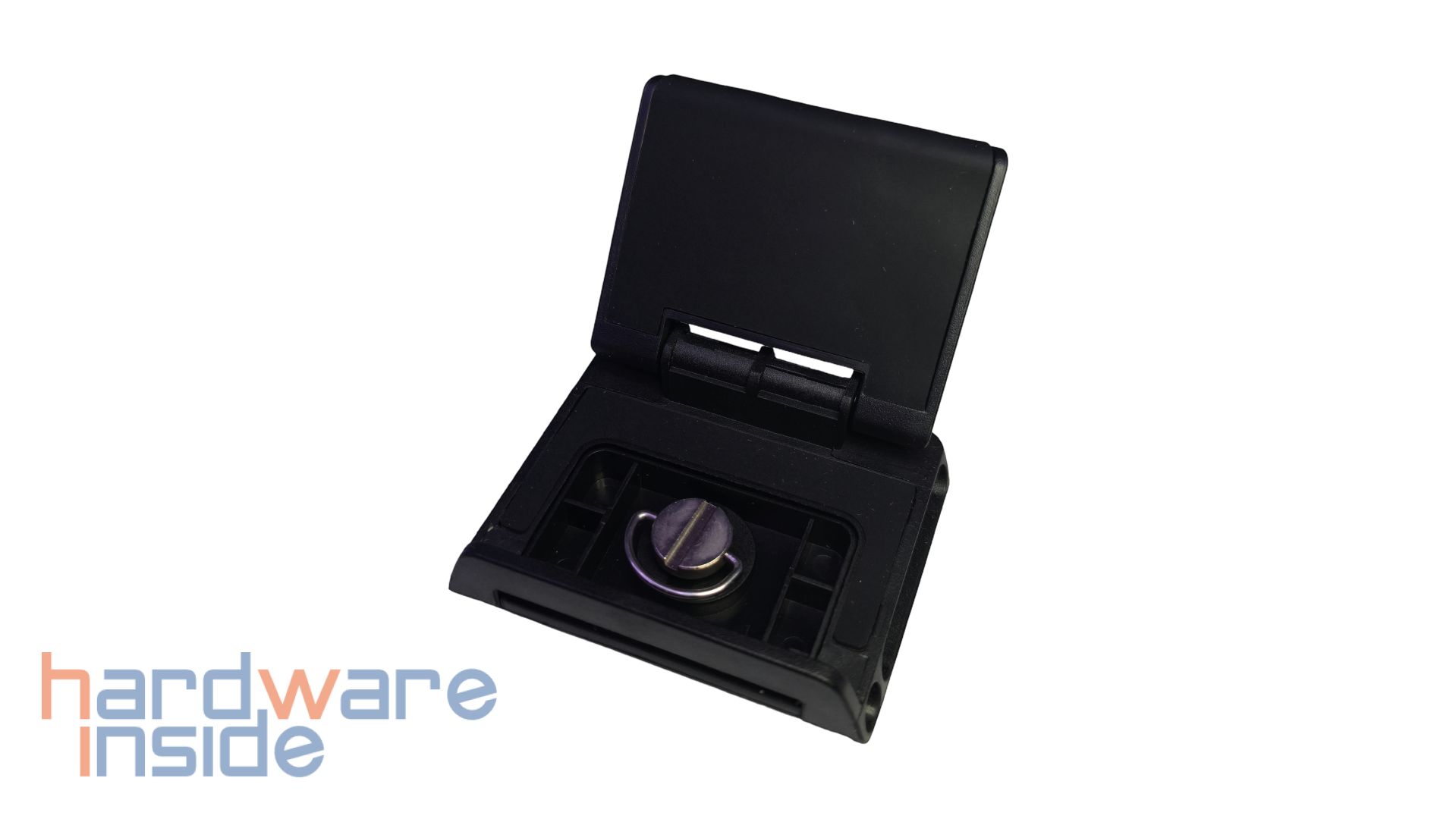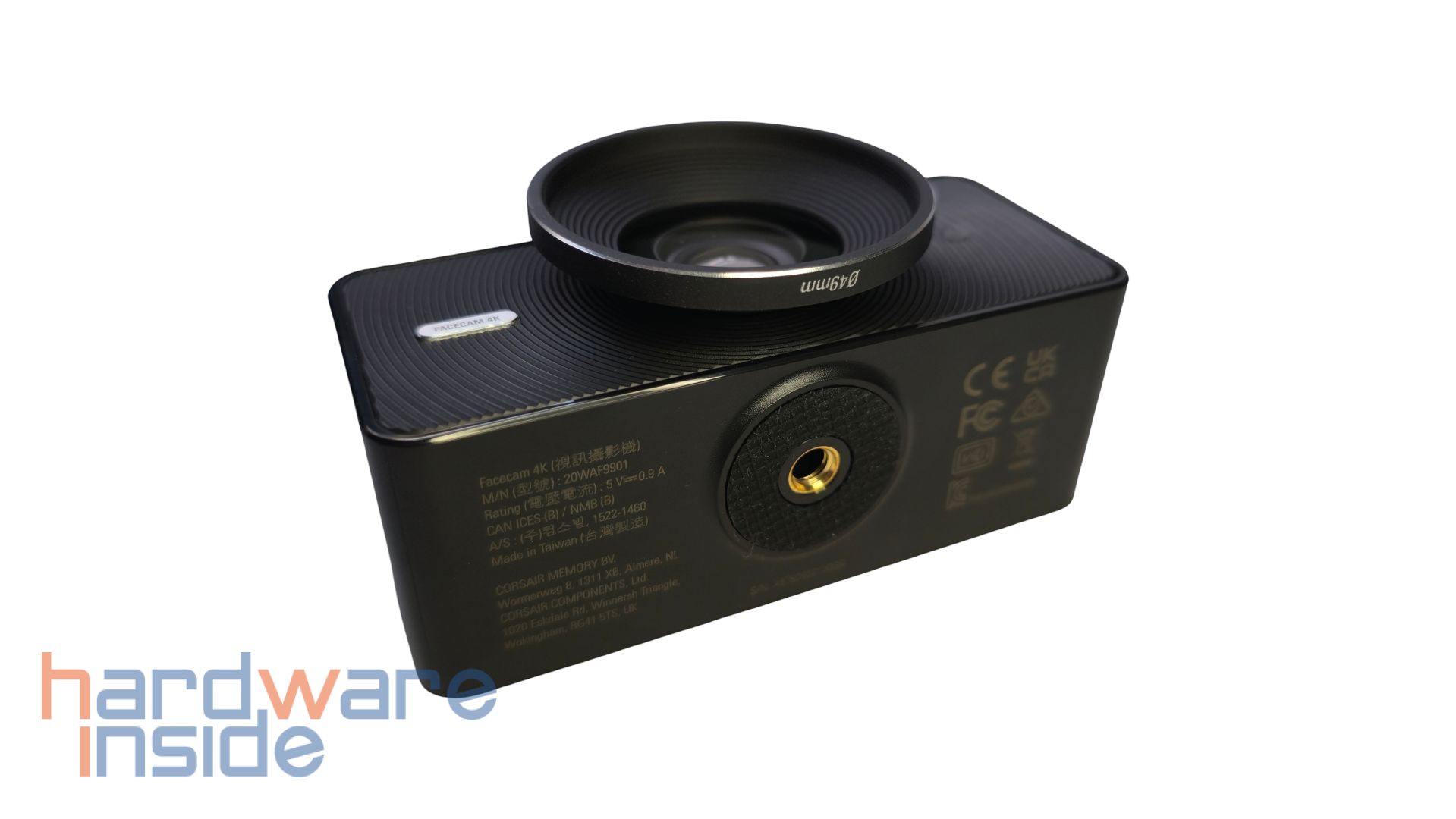 Die Unterseite der Kamera beherbergt weitere und technische Informationen, Herstellerhinweise zu Corsair und eingravierte Zertifikate. Einer der wichtigsten Dinge befindet sich auch auf der Unterseite – eine gummierte und leicht goldene Befestigung. Diese Befestigung umfasst ein 1/4 Zoll Gewinde, sodass mehrere Stative verwendet werden können.