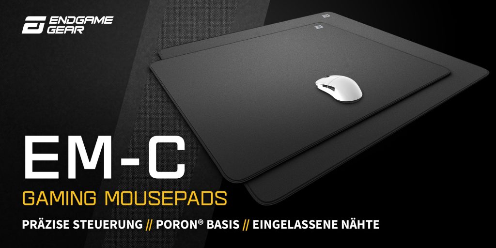 Berlin, 30.06.2023 – Endgame Gear ist die Top-Adresse für Gaming Ausrüstung auf Profi-Niveau. Die neuen EM-C Gaming-Mauspads auf PORON® Basis zeichnen sich durch eine besondere Oberfläche mit geringer statischer, aber hoher kinetischer Reibung aus. Dies ermöglicht jederzeit maximale Kontrolle und Präzision. Eingelassene Nähte, der optimale Halt auf vielfältigen Untergründen und das stilvoll, minimalistische Design: die EM-C Mauspads sind No-nonsense Profi-Werkzeuge, die den Weg frei machen, für dich und dein Aim.