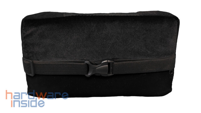 Das schwarze Kopfkissen aus weichem Stoff ist ebenfalls mit dem ENDORFY-Logo und dem Schriftzug in einem Grauton eingenäht. Das Lordosenstützkissen ist, wie der Stuhl selbst, aus Kunstleder und schwarzem Stoff gefertigt und etwas fester als das Kopfkissen.