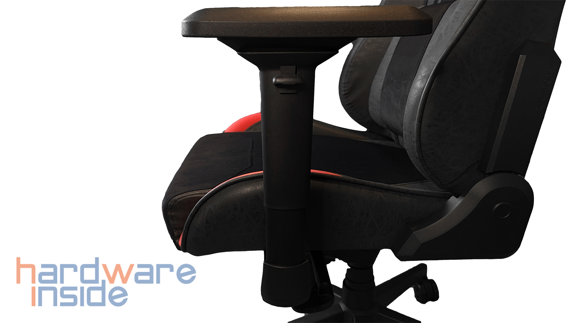 Die Armlehne ist ebenfalls wichtig, um die perfekte Sitzposition zu finden und lässt sich dementsprechend vielseitig einstellen. Die Armlehne kann in der Höhe zwischen 29,5 und 36,5 cm verstellt, leicht gedreht und nach vorne oder hinten verschoben werden. Die Armlehnen selbst sind aus weichem Kunststoff und bieten einen angenehmen Komfort.