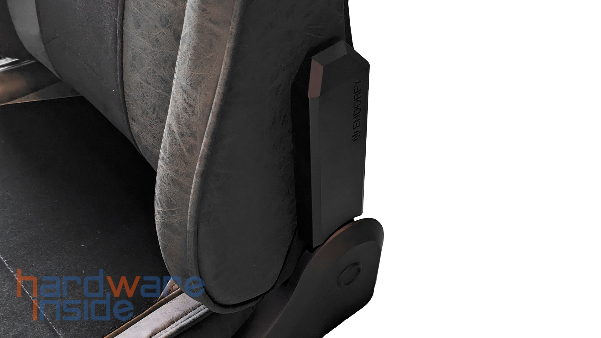 Das schwarze Kopfkissen aus weichem Stoff ist ebenfalls mit dem ENDORFY-Logo und dem Schriftzug in einem Grauton eingenäht. Das Lordosenstützkissen ist, wie der Stuhl selbst, aus Kunstleder und schwarzem Stoff gefertigt und etwas fester als das Kopfkissen.