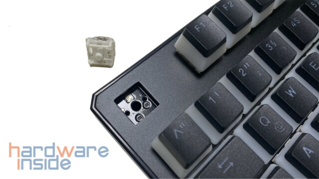 Unter den Tastenkappen kommen taktile Kalih Box Brown Switches zum Einsatz. Die Box Brown Switches sind in einem 5-Pin Design gefertigt und besitzen auch einen MX-Stern als Aufnahme, um insgesamt eine bessere Stabilität zu gewährleisten. Für die Beleuchtung sorgt eine verbaute ARGB-LED in dem staubgeschützten Gehäuse. Mit einer Lebensdauer vom 70 Millionen Auslösungen, ist man bestens für den täglichen Einsatz und auch beim Gaming gut ausgestattet. Der Auslösedruck der Box Brown Switches liegt bei ca. 45 g mit einer Auslösehöhe von 1,8 mm.