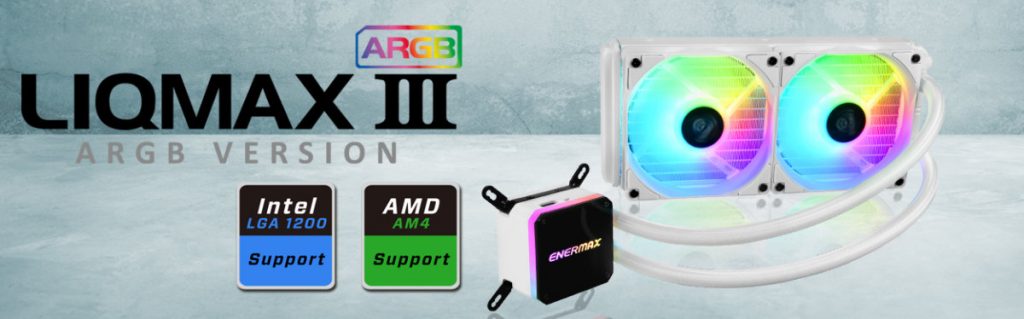 Hamburg – 5. Juli 2021 – Mit dem LIQMAX ARGB 240 White fügt ENERMAX seinem Portfolio einen neuen Kühler in weißer Optik hinzu. Weiße Computer-Hardware ist zunehmend gefragt und wird oft in Show-Cases eingesetzt, um die Farben der RGB-Beleuchtung hervorzuheben. Die All-in-One-Wasserkühlung ist für den Einsatz mit 5V-RGB-kompatiblen Mainboards von ASUS, ASRock, MSI und Gigabyte konzipiert und kann über die Mainboard-Software gesteuert werden. Die vielfältigen Beleuchtungseffekte können mit der gesamten RGB-Hardware im System synchronisiert werden.
