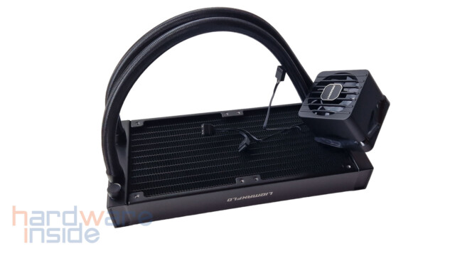 Der 240 mm Radiator wartet mit einer Stärke von 38 mm gegenüber der handelsüblichen Stärke von 27 mm auf. Seitlich ist eine Nachfüllöffnung vorhanden, die sich einfach herausdrehen lässt. Somit ist es jederzeit problemlos möglich, Kühlmittel nachzufüllen (im Lieferumfang enthalten). Bei der Installation sollte jedoch auf die Dicke des Radiators inklusive der eingebauten Lüfter geachtet werden, um eventuelle Probleme bei der Montage zu umgehen.