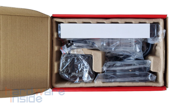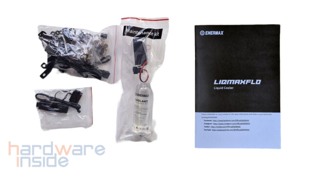 Neben der LIQMAXFLO, die sicher in zwei Plastikbeuteln verpackt ist, wird der Radiator zusätzlich von einer Kartonage geschützt. Außerdem befindet sich noch folgendes Zubehör im Lieferumfang: