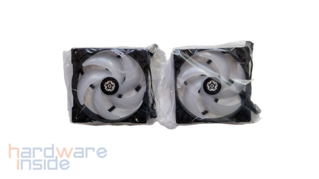 Beide Lüfter verfügen seitlich am Rahmen über zwei Stecker, die unkompliziert miteiander verbunden werden können. Auf diese Weise ist es ebenfalls möglich, die Lüfter mit dem im Lieferumfang enthaltenen PWM- und ARGB-Y-Splitter-Kabel einfach anzuschliessen. Gleichzeitig wird dadurch das kabelmanagment vereinfacht.