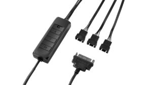 Eine integrierte 3-stufige Lüftersteuerung zum Anschluss von bis zu 6 Lüftern ermöglicht die Optimierung zwischen Lautstärke und Kühlleistung. Außerdem kann der Controller 5 RGB-Geräte mit den integrierten Lichteffekten synchronisieren.