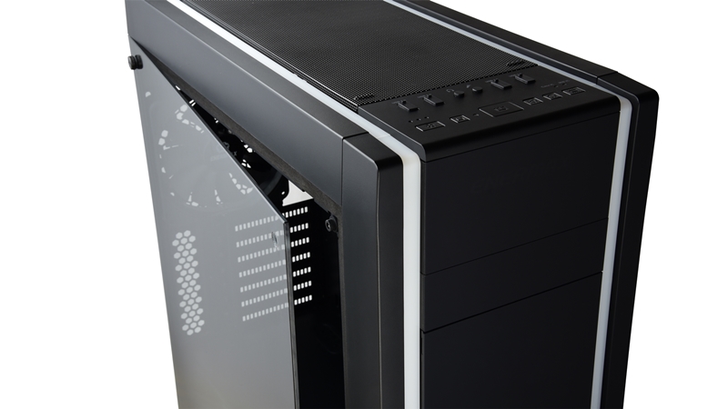 Das Saberay ist ein High-End-Gaming-Gehäuse mit integrierter RGB-Beleuchtung. Die ENERMAX LED-Lichttechnik bietet eine helle und gleichmäßige Ausleuchtung ohne sichtbare LED-Spots. Saberay bietet viel Platz und verschiedene Montagemöglichkeiten für komplexe Flüssigkeitskühlkreisläufe. Das Panoramafenster ist aus 4 mm starkem, gehärtetem Glas, das den Blick auf die Hardware freigibt. Das geradlinige Design und die eingebaute RGB-Beleuchtung machen es perfekt für Case-Mod-Projekte und Gaming-Rigs.