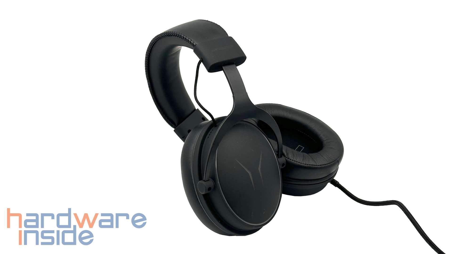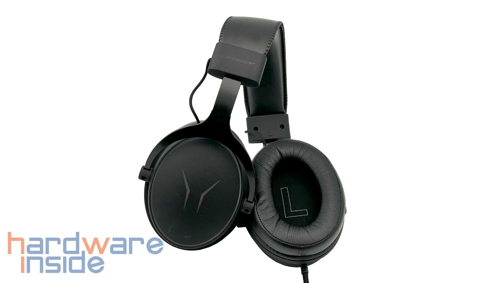 Jede Ohrmuschel verfügt über ein großes und weiches Ohrpolster, welches mit einem schwarzen Kunstlederbezug ausgestattet ist. Das ist pflegeleicht und sollte uns noch ein wenig besser von der Außenwelt abschirmen. Im Inneren finden wir jeweils eine dünne Lage schwarzen Schaumstoffs vor. Dieser ist jeweils mit dem Buchstaben „L“ oder „R“ gekennzeichnet, wodurch die Tragweiße gezeigt wird. Das Headset lässt sich nicht zusammenfalten, verfügt aber über genügend Flexibilität, um sich an alle Gegebenheiten anzupassen.