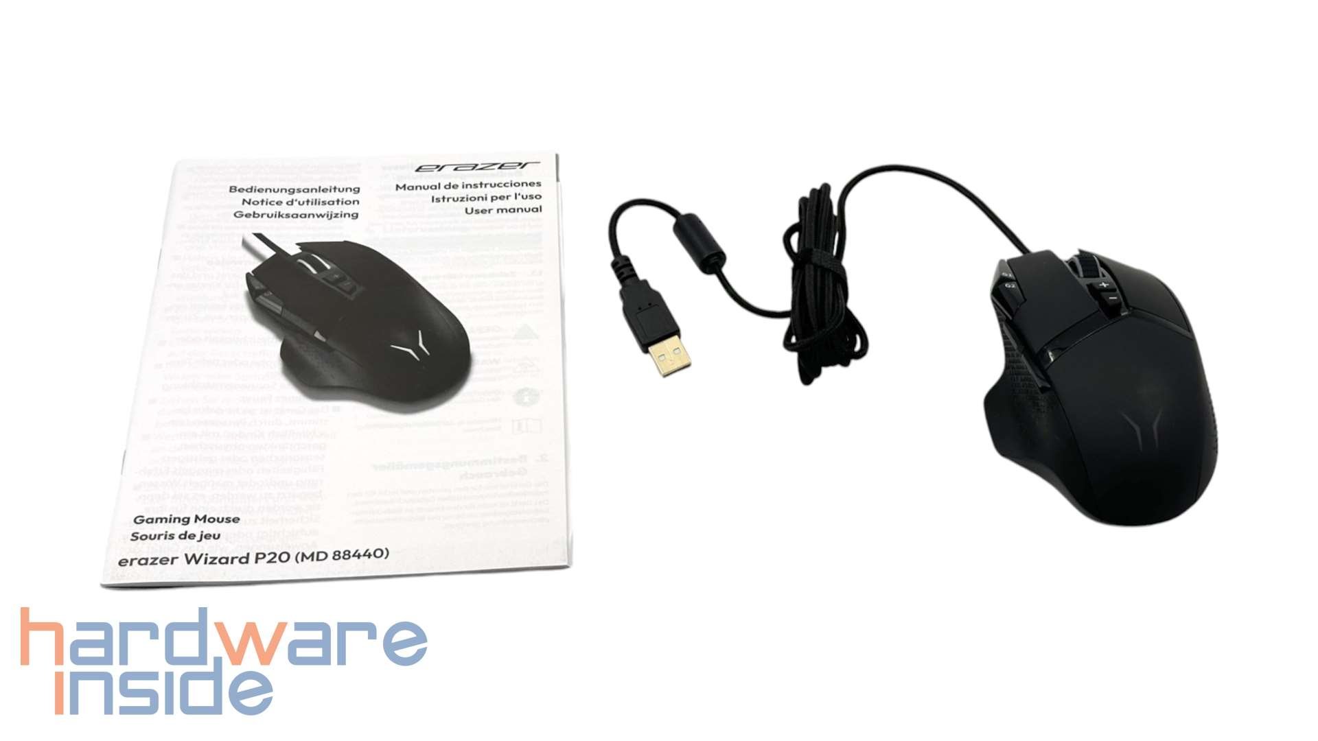Der Lieferumfang der Erazer Wizard P20 ist übersichtlich, aber komplett. Neben der Maus erhalten wir lediglich eine Bedienungsanleitung, welche in mehreren Sprachen, darunter auch in deutsch, ausgeführt ist.