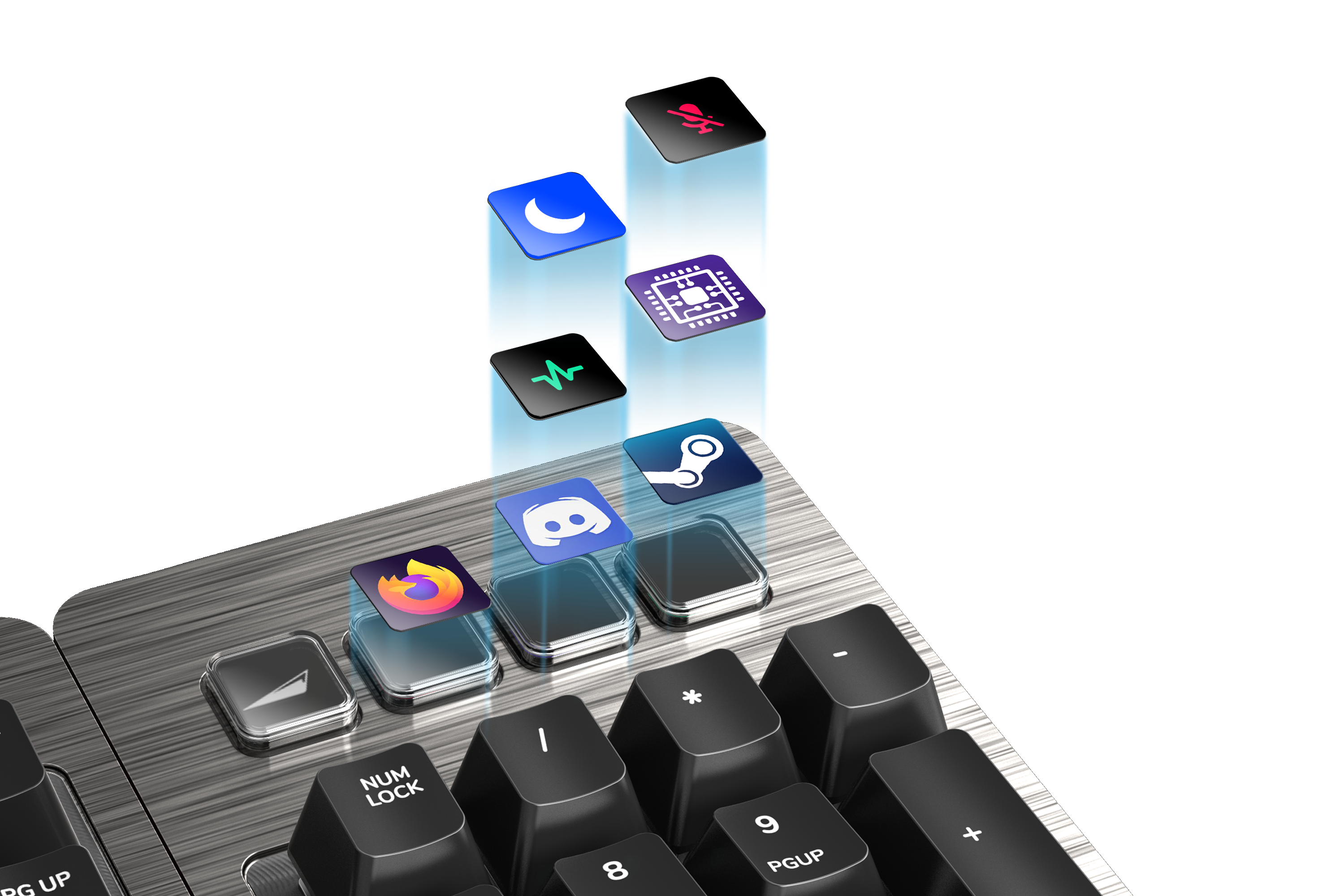 - Abnehmbares Numpad mit integrierten Display Keys (Max Version)
