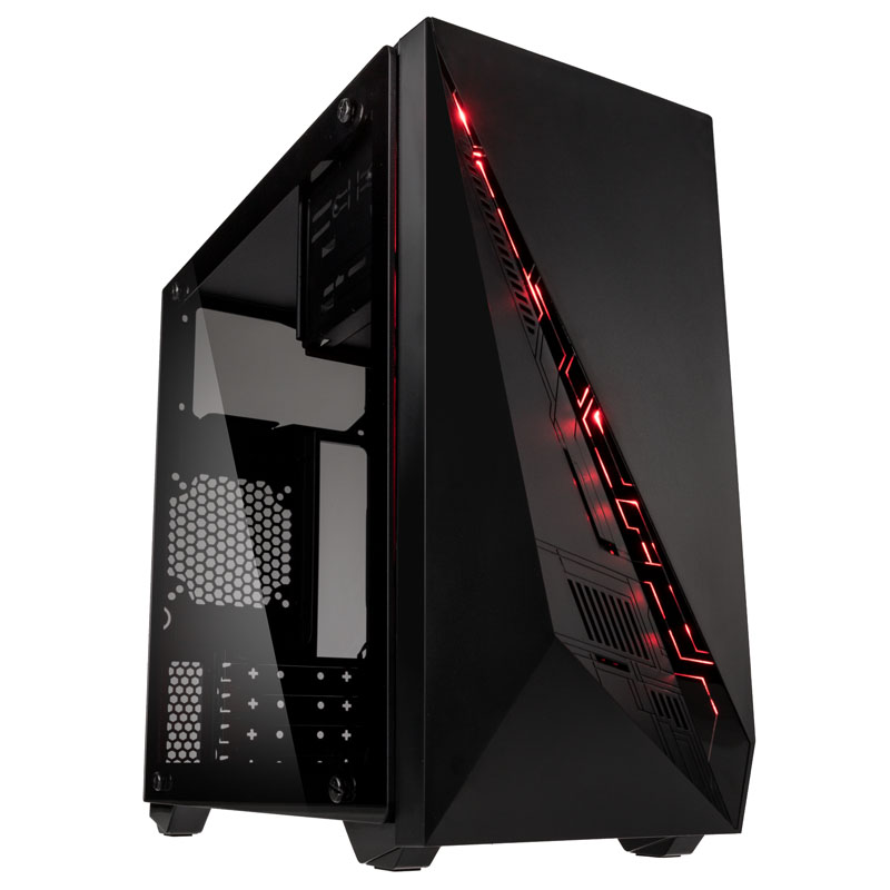 Für die Micro-ATX-Gehäuse Inspire K2 und K3 hat sich Kolink etwas ganz Besonderes einfallen lassen: Die Vorderseiten sind mit einem einmaligen Design versehen und mit RGB-LED-Strips verziert, die sich über das I/O-Panel steuern lassen. Zusammen ergeben sie ein auffälliges und geheimnisvolles „X“ oder einen Look wie aus dem Film Tron. Die gut platzierten Aussparungen dienen der Luftzufuhr und gleichzeitig als Staubfilter. Seitenteile aus getöntem Hartglas gewähren einen Blick ins Innere, etwa auf ein Micro-ATX-Mainboard. Auch sonst passt in das Micro-ATX-Gehäuse kräftige Hardware und genügend Laufwerke, um darin ein optimales Gaming-System unterzubringen.