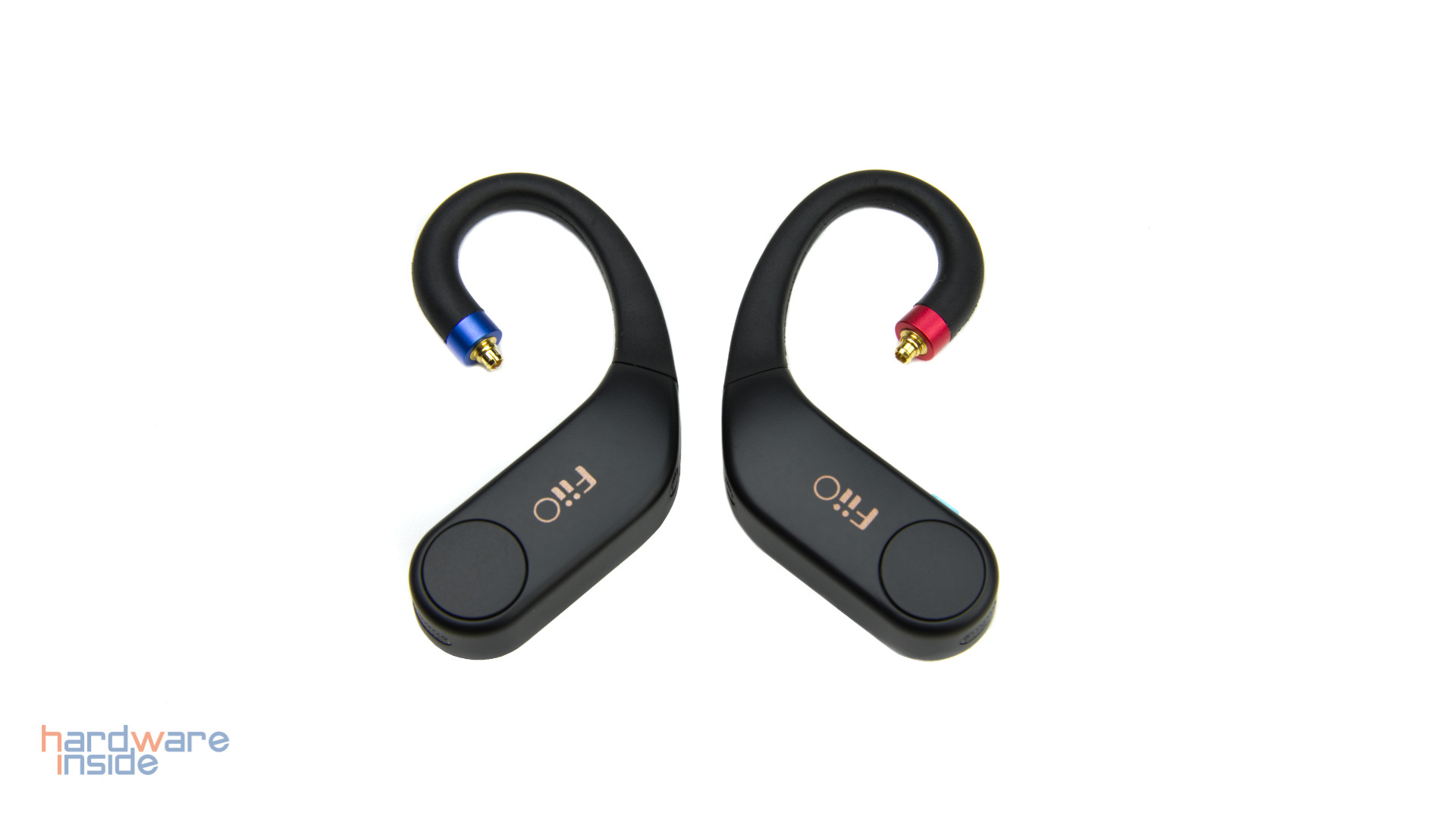 Jeder der zwei gummierten Adapter wiegt 8 Gramm. Da diese hinter das Ohr gelegt werden, fällt das Gewicht nicht negativ auf. Jede der zwei Seiten verfügt über einen berührungsempfindlichen Schalter. Darüber können verschiedene Befehle ausgeführt werden, die auch nachträglich via App angepasst werden können. Seitlich wurde jeweils ein Mikrofon verbaut, welches nur einen brauchbar guten Job leistet. Die Connectoren sind vergoldet, in unserem Fall setzen wir auf den MMCX-Anschluss. Alternativ lassen sich die FiiO UTWS5 auch als 2-Pin (0,78 mm) Variante kaufen. Die Verarbeitungsqualität ist an der Stelle positiv hervorzuheben, keine Unregelmäßigkeiten im Material oder Spaltmaße stören den Eindruck. Die Oberfläche ist glatt und fühlt sich hinter dem Ohr gut an. Durch die aufseiten der Connectoren eingesetzte Materialwahl, lassen sich die UTWS5 an die eigenen Ohren anpassen. Das Gehäuse sollte nah am Kopf anliegen, da die Befehlstasten erst via Druck auslösen.