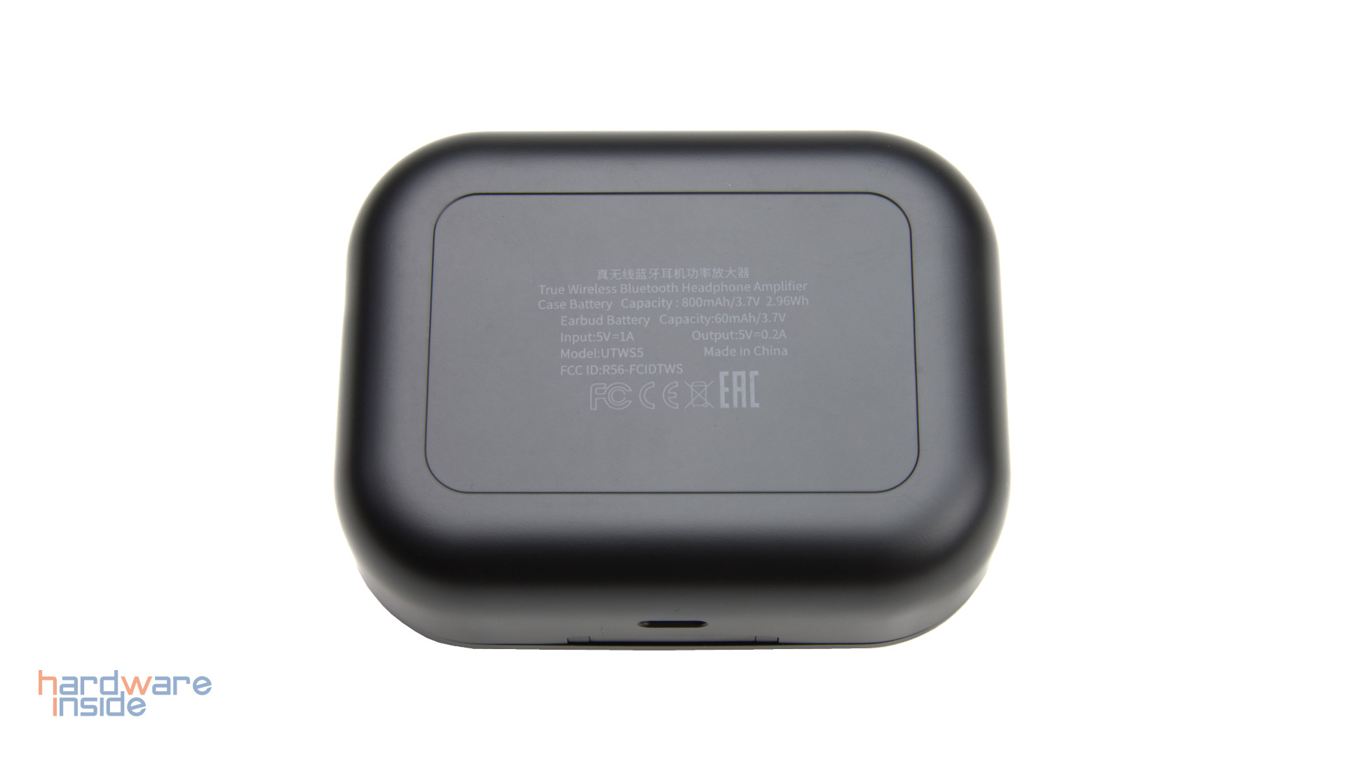 Zum Lieferumfang gehören die obligatorische Anleitung und ein Infoheft über die Garantiebestimmungen. Mithilfe des kurz geratenen USB-C auf USB-A Kabels können die UTWS5 aufgeladen werden, ein separates Netzteil liegt nicht bei. Die eigentlichen True Wireless Bluetooth Amplifier befinden sich magnetisch fixiert in der Ladeschale, welche ein gutes Stück größer ausfällt als vergleichbare True Wireless In-Ear Modelle von Apple.