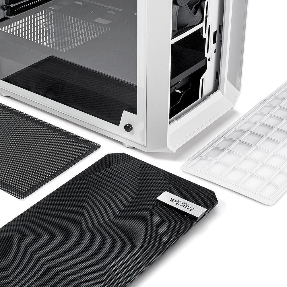 Schweden, 14. März 2018 – Die Meshify C Serie verleiht dem bekannten Design der Fractal Design Gehäuse eine markante Note und punktet weiterhin mit einer nahezu perfekten Kühlleistung sowie einem aufregenden Erscheinungsbild. Die Facetten an der Front sind mit ihren asymmetrischen Winkeln an einen Diamanten angelehnt und verleihen dem Meshify C White – TG sein einzigartiges Design, welches das Gehäuse zu einer führenden Kraft im Bereich High-Airflow macht. Hochwertiges Tempered Glass vervollständigt den ästhetischen Look mit außergewöhnlichem Stil.