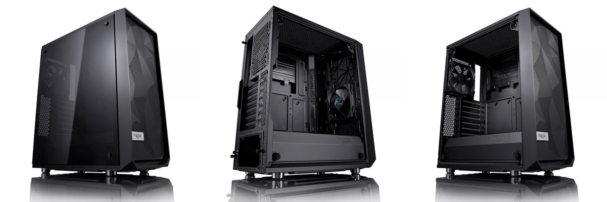 Schweden, 09.08.2017 – Die neue Meshify Serie verleiht dem bekannten Design der Fractal Design Gehäuse eine neue markante Note und punktet weiterhin mit einer nahezu perfekten Kühlleistung sowie einem aufregenden neuen Erscheinungsbild. Die Facetten an der Front sind mit ihren asymmetrischen Winkeln an einen schwarzen Diamanten angelehnt und verleihen dem neuen Meshify C so ein einzigartiges Design, welches das Gehäuse zu einer führenden Kraft im Bereich High-Airflow macht. Hochwertiges, mit einer unverwechselbaren Tönung versehenes getempertes Glas vervollständigt den ästehtischen Black-On-Black Look mit außergewöhnlichem Stil.