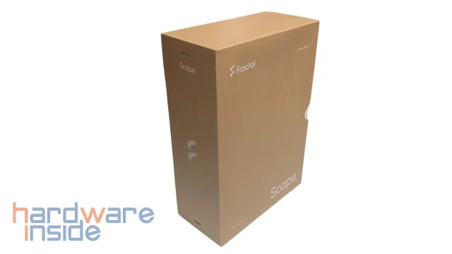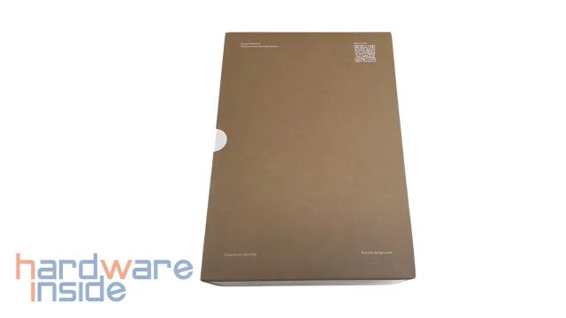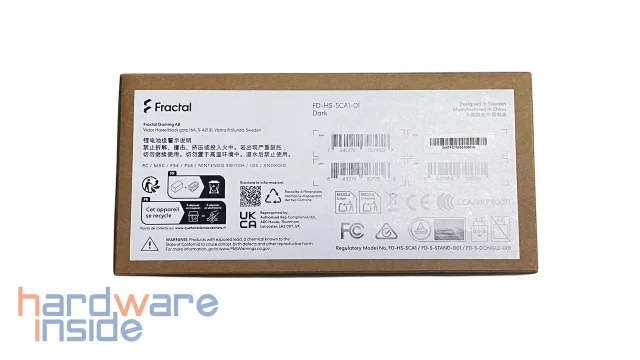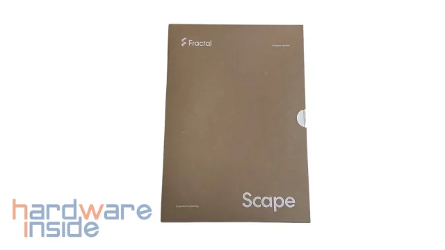 Das Fractal Scape kommt in einer sehr ansprechenden Verpackung daher. Die zweigeteilte Verpackung besteht zum einen aus einem Schuber aus brauner Pappe, auf dem auf der Vorderseite das Hersteller-Logo und die Produktbezeichnung in großen Lettern aufgedruckt ist. In kleinerer ebenfalls weißer Schrift ist zusätzlich Wireless Headset und Experience Gaming jeweils rechts oben und links unten zu sehen. Auf der Rückseite ist zusätzlich noch ein QR-Code, der Link zur Webseite und der Hinweis auf eine Dockingstation, die sich ebenfalls im Lieferumfang befindet. An der Unterseite befindet sich ein großer Aufkleber mit weiteren Produktinformationen wie z. B. die Seriennummern, die Farbe, die Kompatibilität und die Anschrift des Herstellers.