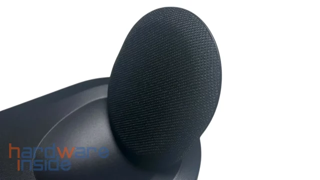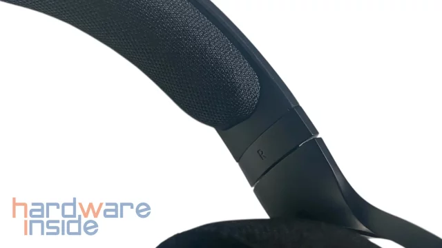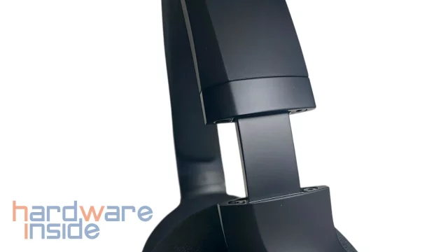 Das Kopfband ist am Ende mit einem Anschlag aus Metall verbunden. Direkt an dem Anschlag befindet sich auch die Aufnahme für die Treibergehäuse. Im Gegensatz zu anderen Headsets setzt Fractal beim Scape auf nur einen Haltepunkt. Die geschwungene Aufnahme besteht dabei aus Metall und passt sich in der Form perfekt an das Kopfband an. An der Innenseite sind R und L eingestanzt, sodass es auch zu keiner Verwechslung der Seiten kommt. Damit das Scape auch an den Kopf angepasst werden kann, lässt sich das Kopfband an den Seiten herausziehen und so verlängern. Eine Rasterung gibt es dabei aber nicht.