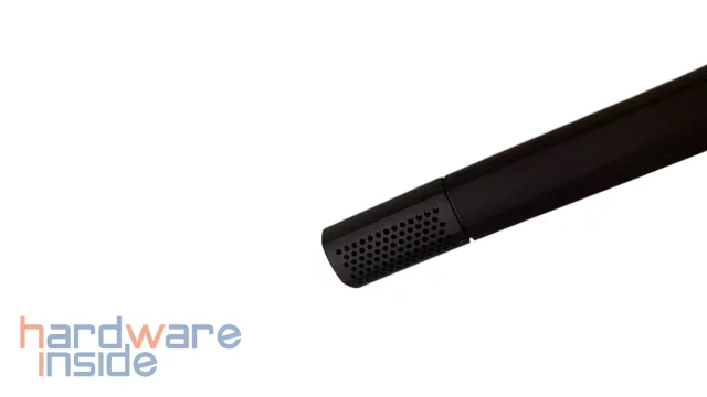 Beim Mikrofon setzt Fractal auf eine abnehmbare Variante. Die Abdeckung des Mikrofons und der Arm selbst bestehen aus Kunststoff. Am Ende ist ein Gelenk aus Metall verbaut, was auf einer Klinke endet. So kann das Mikrofon schnell montiert oder abgenommen werden. Durch Hoch- und Runterklappen des Mikrofons kann es deaktiviert und aktiviert werden.
